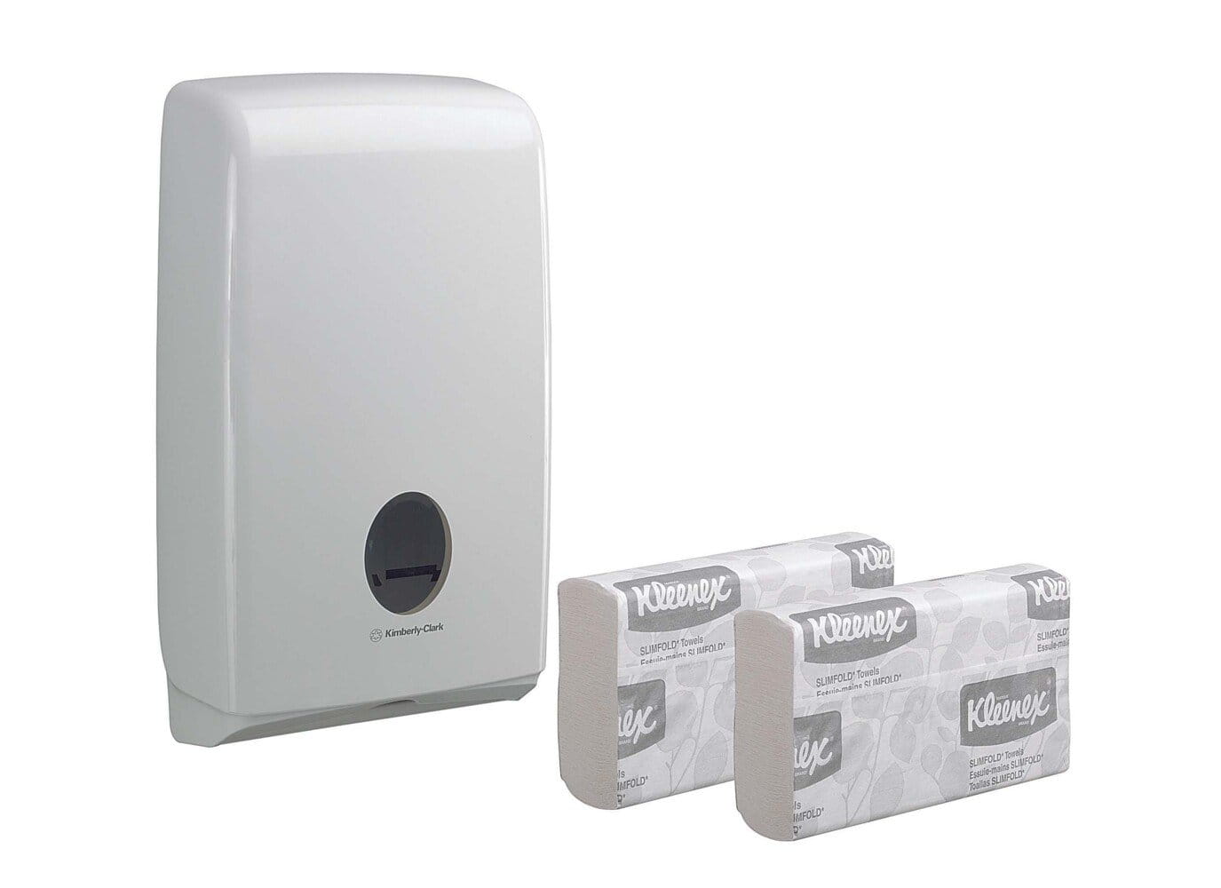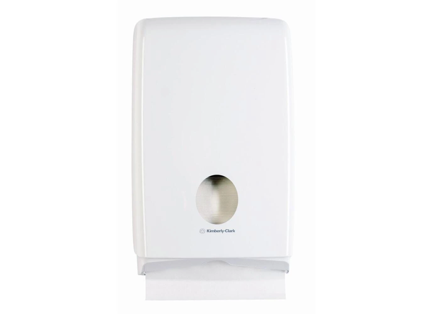 Niezbędny dozownik złożonych ręczników do każdej firmy. Kompatybilny z różnymi produktami łazienkowymi, dozownik promuje higienę i pomaga zarządzać kosztami poprzez kontrolowane dozowanie. Eleganckie i nowoczesne rozwiązanie sprawia, że jest idealnym produktem do każdego otoczenia łazienkowego. Dozownik ma zaokrąglone krawędzie i łatwo go czyścić jedną ściereczką lub wycieraczką. Zaokrąglona góra zapobiega gromadzeniu się śmieci, kurzu i brudu. Zaprojektowano z unikalnym, opatentowanym urządzeniem zapobiegającym przepełnieniu, które ułatwia uzupełnianie i zapobiega zacinaniu się oraz marnotrawstwu. Ten produkt jest częścią skoordynowanej gamy dozowników łazienkowych, które nadają Twojej łazience stylowy i profesjonalny charakter. Wymiary dozownika: 38cm (L) x 23,90cm (W) x 8,10cm (D). Kompatybilny z ręcznikami Scott® Slimfold™ (kod produktu 5856) oraz Kleenex® Slimfold™ Ręcznikami do rąk (kody produktów 4442 i 7693).