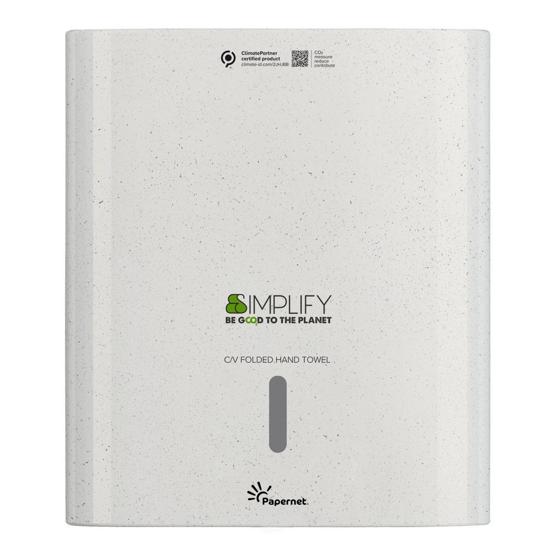 Dozownik ręczników składanych w C/V z gamy Simplify został wykonany z pełnym poszanowaniem środowiska, z pokonsumencklego tworzywa sztucznego i drewna pochodzącego z recyklingu, z odpornego na wstrząsy materiału, który gwarantuje maksymalną odporność.