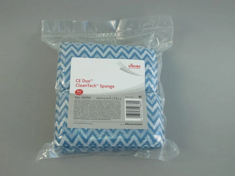 Ta laminowana gąbka z mikrowłókien przeznaczona do pomieszczeń czystych typu cleanroom doskonale nadaje się do czyszczenia/dezynfekcji wszystkich rodzajów powierzchni, w tym trudno dostępnych miejsc za sprzętem i rurami, klamek drzwi, rogów i wszystkich powierzchni, których nie można wyczyścić za pomocą mopa. Dobrze nadaje się również do czyszczenia sprzętu i mebli, jak np. okapów, izolatorów, instalacji rurowych i szafek. Gąbka CE Duo™ CleanTech™ może być używana zarówno z metodą wiadrową, jak i wstępnie przygotowaną. Gąbka jest dwustronna i przeznaczona do stosowania ręcznego, przez co zapewnia wyższy stopień kontroli użytkownika. Przeznaczona do stosowania w pomieszczeniach typu clean room klasy ISO 5/GMP A+B/FED209D Klasy 100 i wyższej