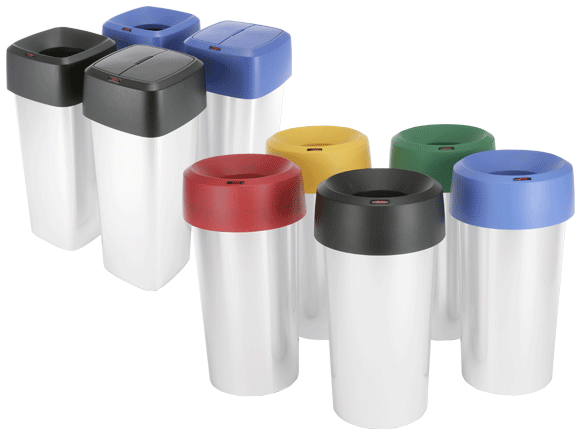 Kosze na śmieci Iris, podobnie jak Geo wykonane zostały z wykorzystaniem technologii „materiałów połączonych”, łączącą trwałość i jakość materiałów sztucznych z estetyką wyglądu stali nierdzewnej (łatwość czyszczenia, niepozostawanie odcisków palców, odporność na korozję i wgniecenia). Są przeznaczone do zastosowań biurowych. Dostępne w wersji 50l pojemności o kształcie okrągłym z pokrywami odsuwanymi.