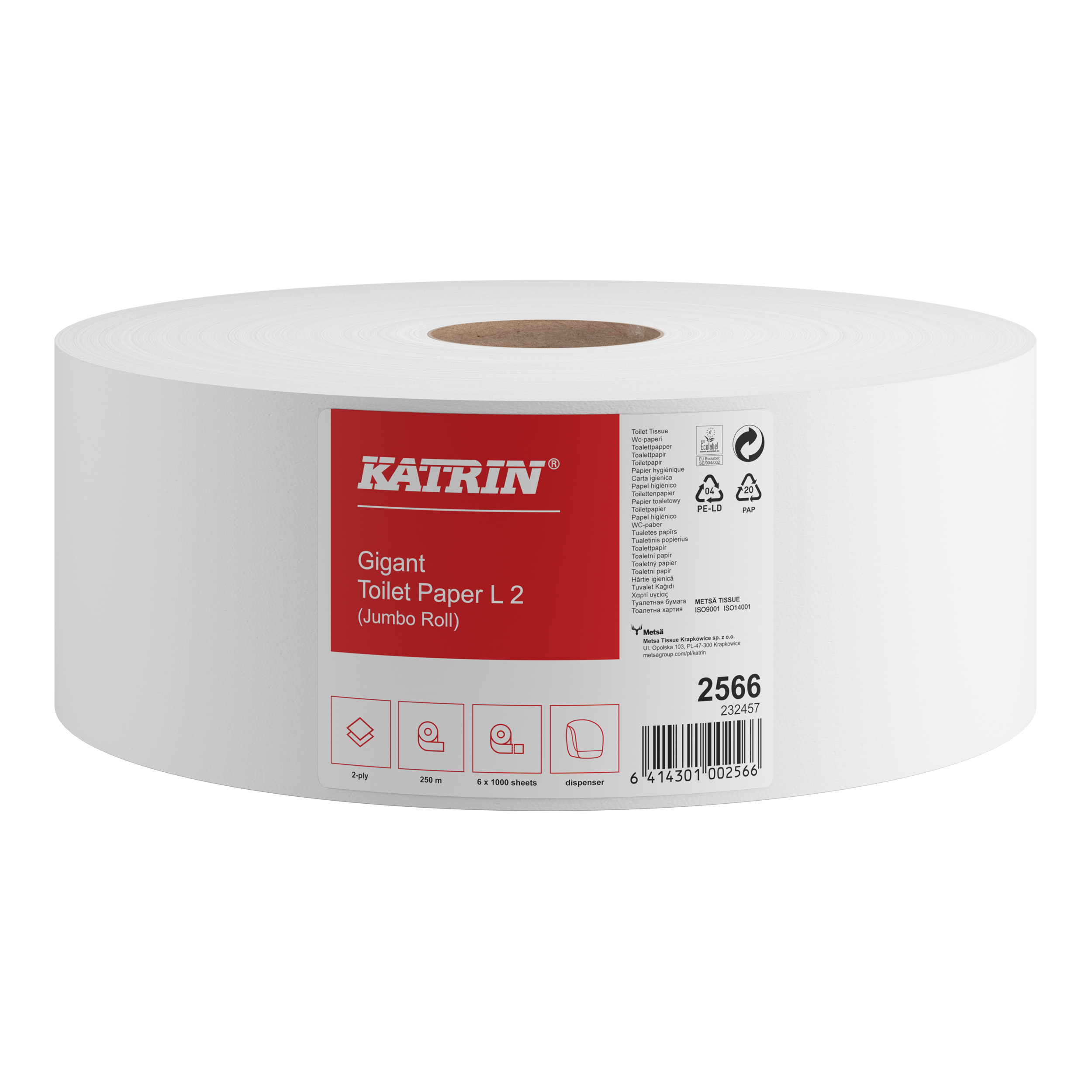 Katrin papier toaletowy jumbo L 250 m biały 2 warstwowy