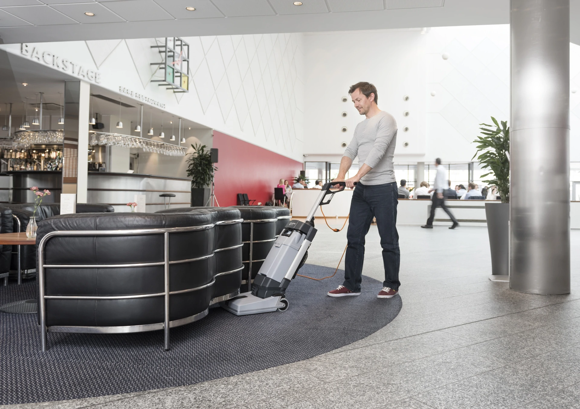 Nilfisk SC 100 to niewielka maszyna szorująco-zbierająca do gruntownego czyszczenia podłoży w wąskich, trudno dostępnych miejscach.