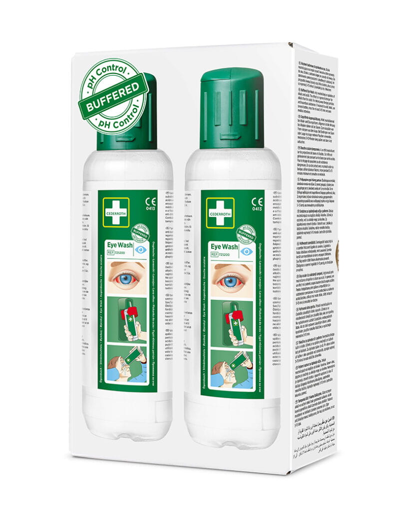 Poza tym płukanka do oczu Cederroth jest dostępna w kilku wersjach, ze zróżnicowanym wyposażeniem, pozwalającym na umieszczenie jest w takich miejscach, aby była łatwo dostępna i zawsze gotowa do użycia. Większa szansa na uratowanie oka. Oprócz rozcieńczania i wypłukiwania niebezpiecznej substancji roztwór buforowy Cederroth do płukania oczu wywiera także neutralizujący wpływ na zasady i kwasy. Wywiera generalnie silniejszy wpływ na zasady niż na kwasy.