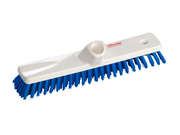Silnie działanie czyszczące do bardzo zabrudzonych obszarów. Higieniczne szczotki Vileda Professional, wykonane z łatwych do wyczyszczenia wysokogatunkowych tworzyw sztucznych i włókien syntetycznych, stworzone zostały z myślą o uzyskaniu wysokiej jakości trwałych produktów o parametrach przewyższających zwykłe szczotki do zamiatania. Wykonane z wysokiej jakości materiałów oferują wysokie standardy higieny. Odporne na ścieranie włosie z poliestrów PBT charakteryzuje się znakomitą sprężystością i jakością zamiatania, jak również wysokim poziomem odporności na działanie wielu środków chemicznych, takich jak oleje, rozpuszczalniki organiczne i detergenty. Mocne tworzywo propylenowe z powodzeniem wytrzymuje znaczne obciążenia, a gładkie wykończenie obudowy chroni przed przywieraniem do niej brudu. Wykonanie ze stali nierdzewnej zszywek, mocujących pęczki włosia do obudowy, gwarantuje długotrwałą eksploatację i higienę. Superior szczotka do szorowania nadaje się do wydajnego szorowania wszystkich rodzajów twardych podłóg i ścian. Wytrzymałe i sztywne włosie PBT gwarantuje maksymalnie skuteczne usuwanie przywartych zanieczyszczeń. Superior szczotka może być sterylizowana w autoklawie w temperaturze do 134°C. Uniwersalny otwór zapewaniający kompatybilność z gwintami typu niemieckiego i włoskiego.