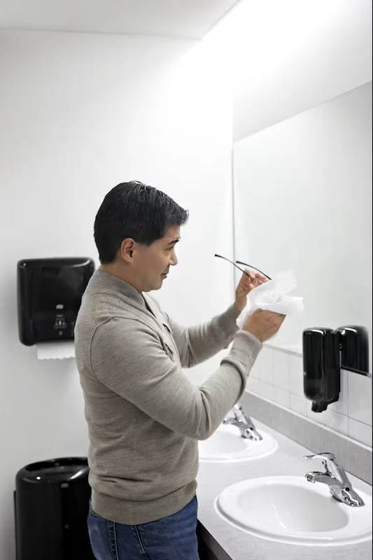 Tork Matic® dozownik do ręczników w roli z linii Elevation zapewnia łatwą konserwację w łazienkach o dużym natężeniu ruchu i redukuje zużycie dzięki dozowaniu pojedynczych odcinków. Dozowniki Tork Elevation wyróżniają się praktycznym i nowoczesnym wyglądem, który zapada w pamięć gości.
