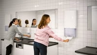 Tork PeakServe®: najnowsza innowacja stworzona z myślą o łazienkach o dużym natężeniu ruchu, gdzie priorytetem jest krótki czas sprzątania oraz niezakłócony przepływ gości.
