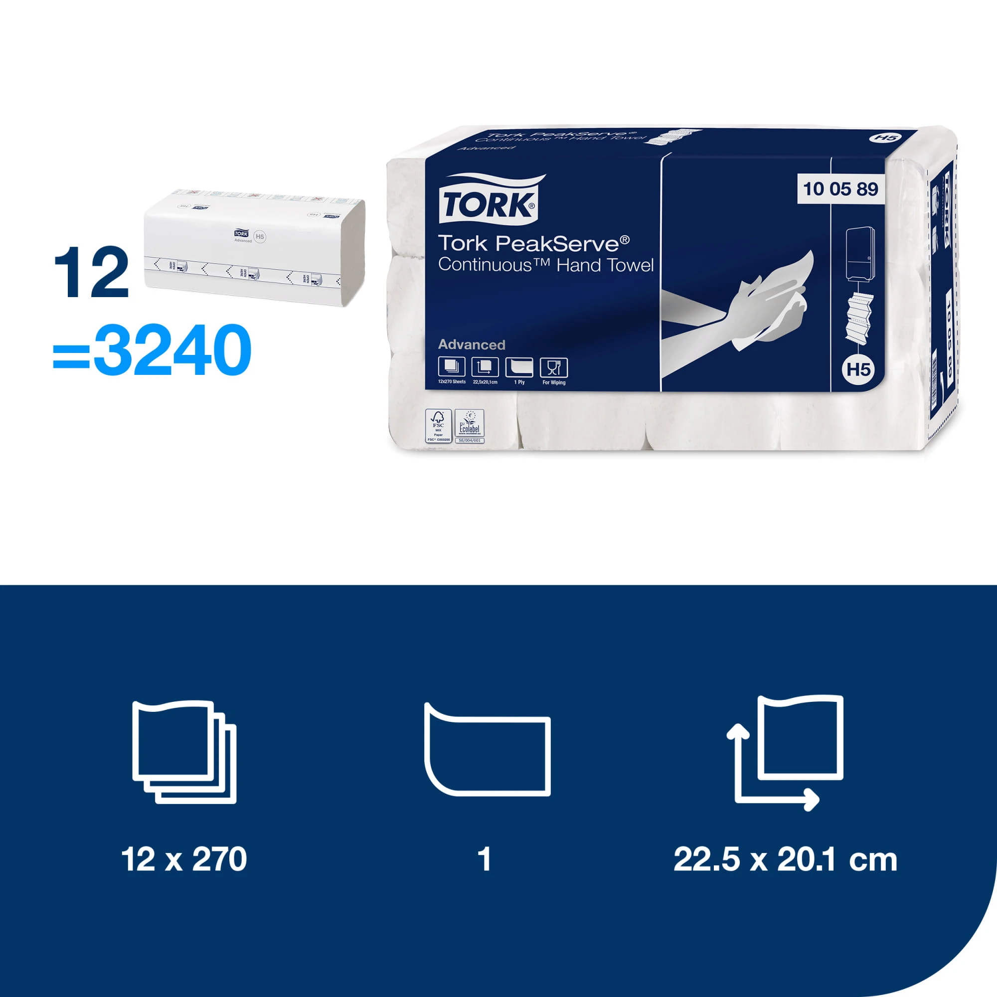 Tork PeakServe® Continuous™ ręczniki papierowe, białe, H5 100589