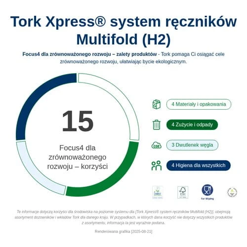 Zapewnij wysoki komfort wycierania dłoni dla swoich gości, wybierając duże i bardzo miękkie ręczniki Tork Xpress® Multifold w składce wielopanelowej, które są łagodne dla dłoni i pozwalają stworzyć wrażenie luksusu.