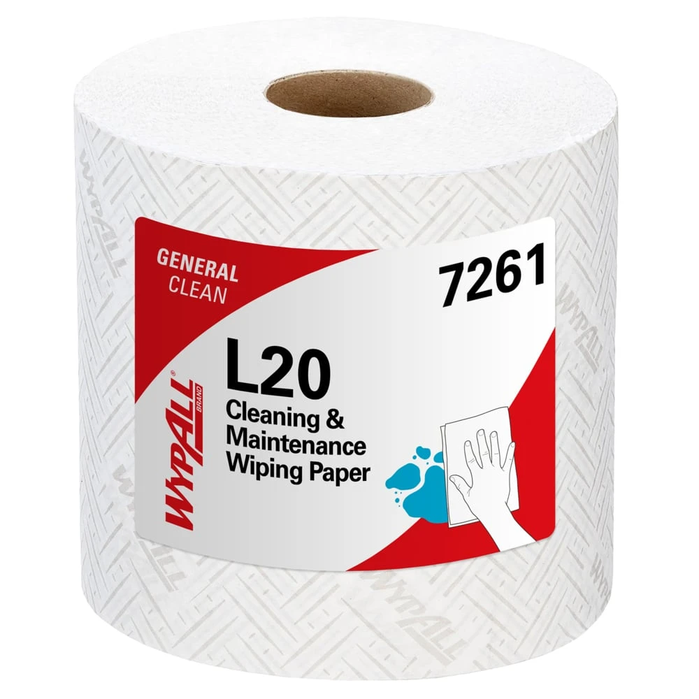 - WypAll® L20 General Clean™ wytłoczony papier do ścierania i czyszczenia jest przeznaczony do bardziej wymagających zadań czyszczących i konserwacyjnych