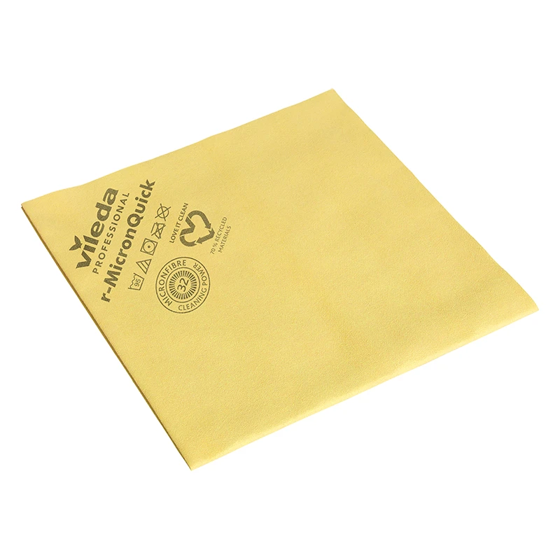 MicronQuick to trwała ściereczka z możliwością prania od spółki Vileda Professional. Ściereczka składa się w 70% z mikrowłókien z recyklingu, które zapewniają doskonałe wyniki sprzątania nawet w przypadku struktur mikroskopijnych i usuwają nawet 99,99% wirusów i bakterii przy pomocy samej wody. Z tego powodu ściereczka r-MicronQuick jest idealna do sprzątania obszarów w ośrodkach zdrowia, w których wymagane jest utrzymanie wysokiego poziomu czystości i higieny. System kodowania kolorystycznego obejmujący cztery kolory umożliwia rozróżnianie ściereczek, co obniża ryzyko ewentualnego przenoszenia zarazków.
